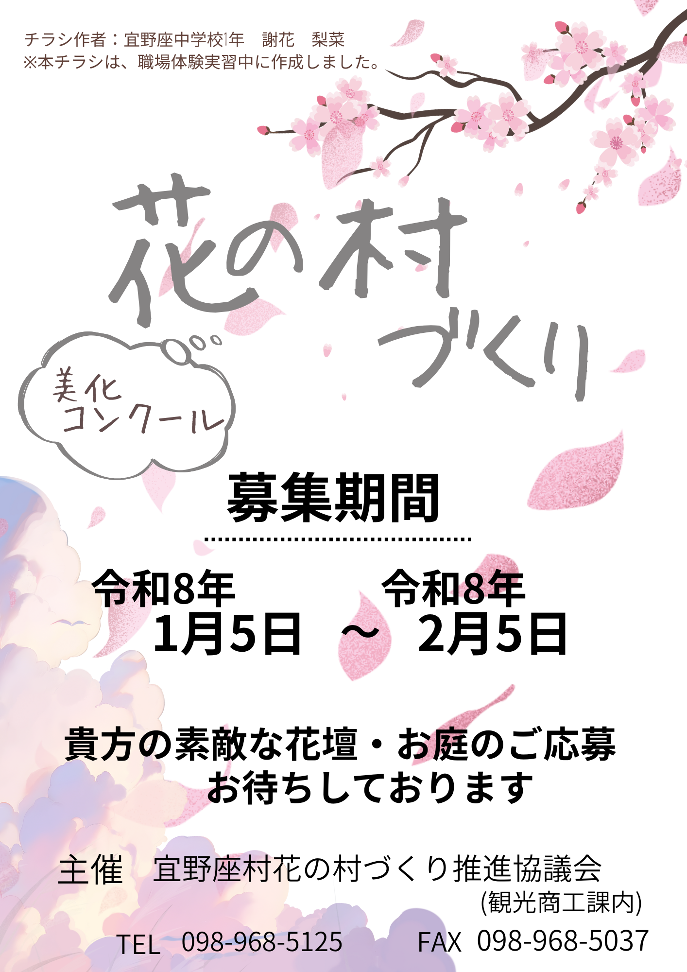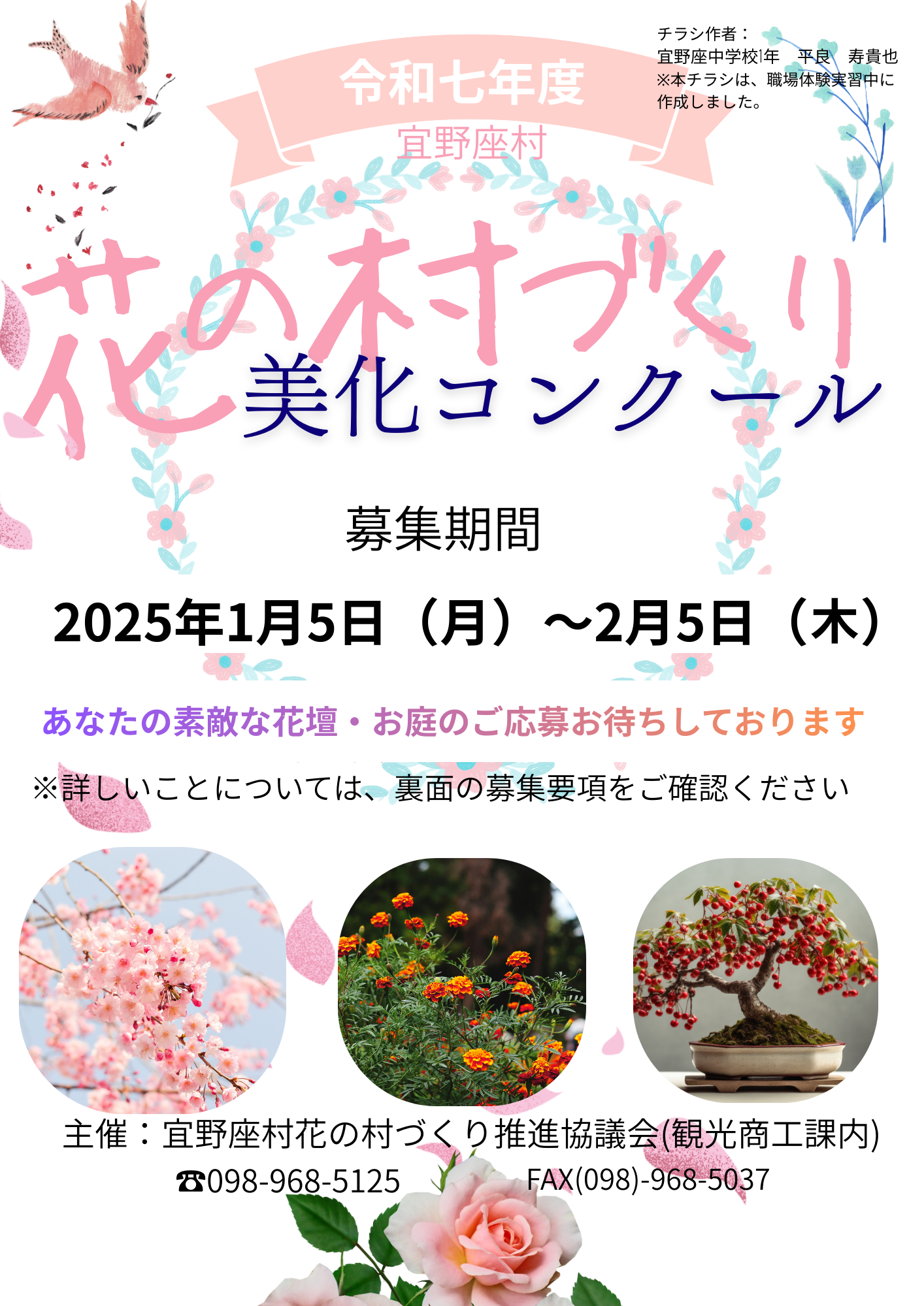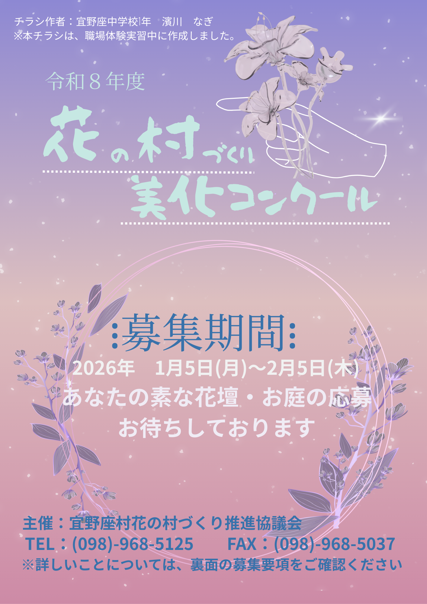 注釈:上記チラシは、宜野座中学校1年生が職場体験実習中に作成しました。